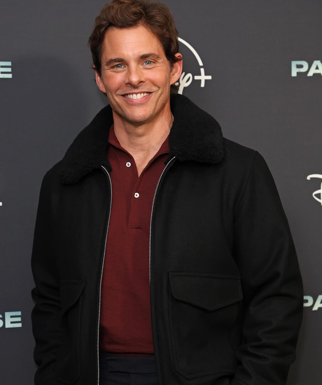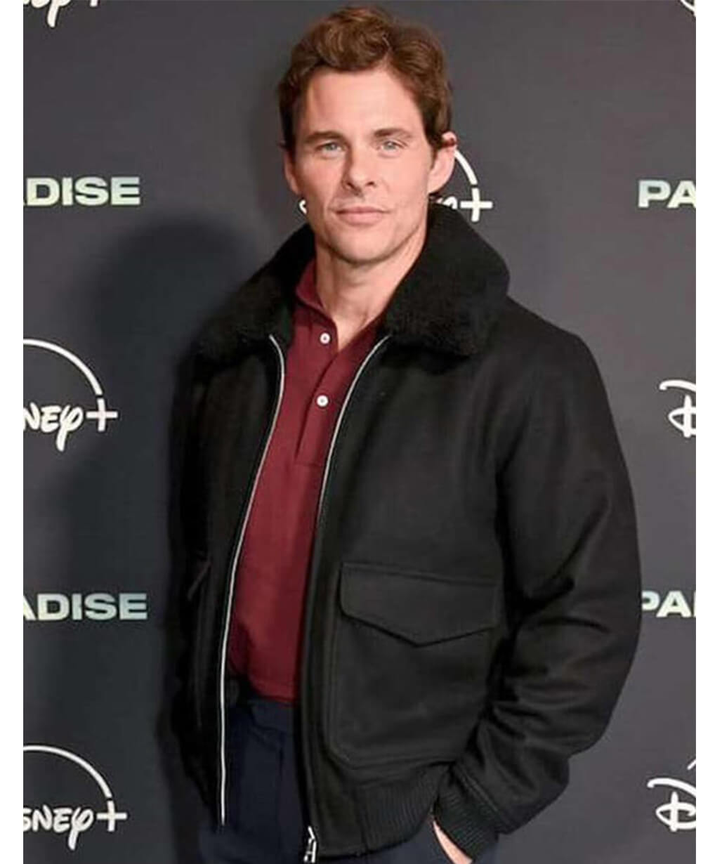 James Marsden Paradise 2025 Cal Bradford Black Bomber Jacket