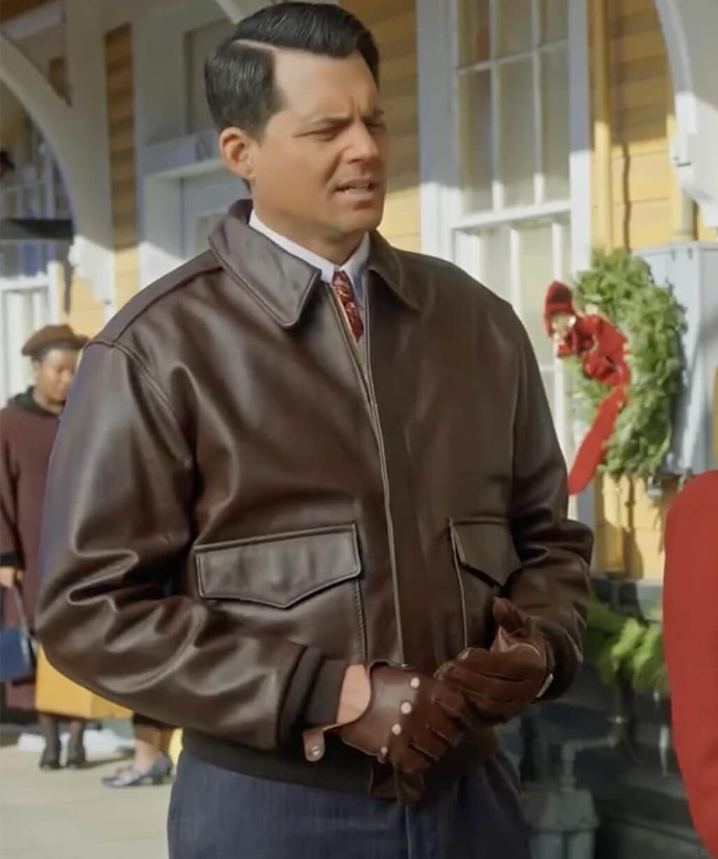 Kristoffer Polaha A Biltmore Christmas Brown Leather Jacket