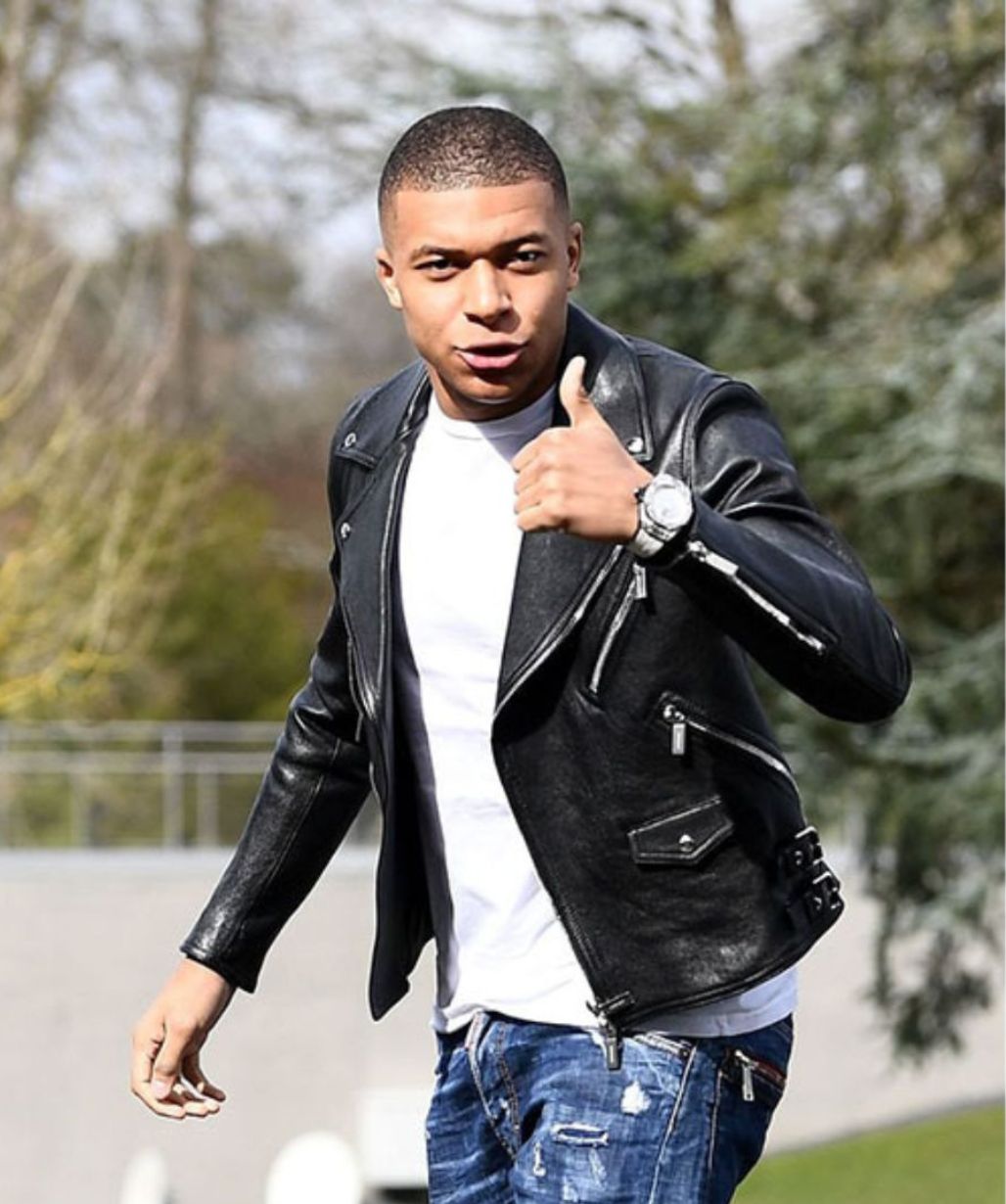 Kylian Mbappe Training Session Black Genuine Leather Jacket