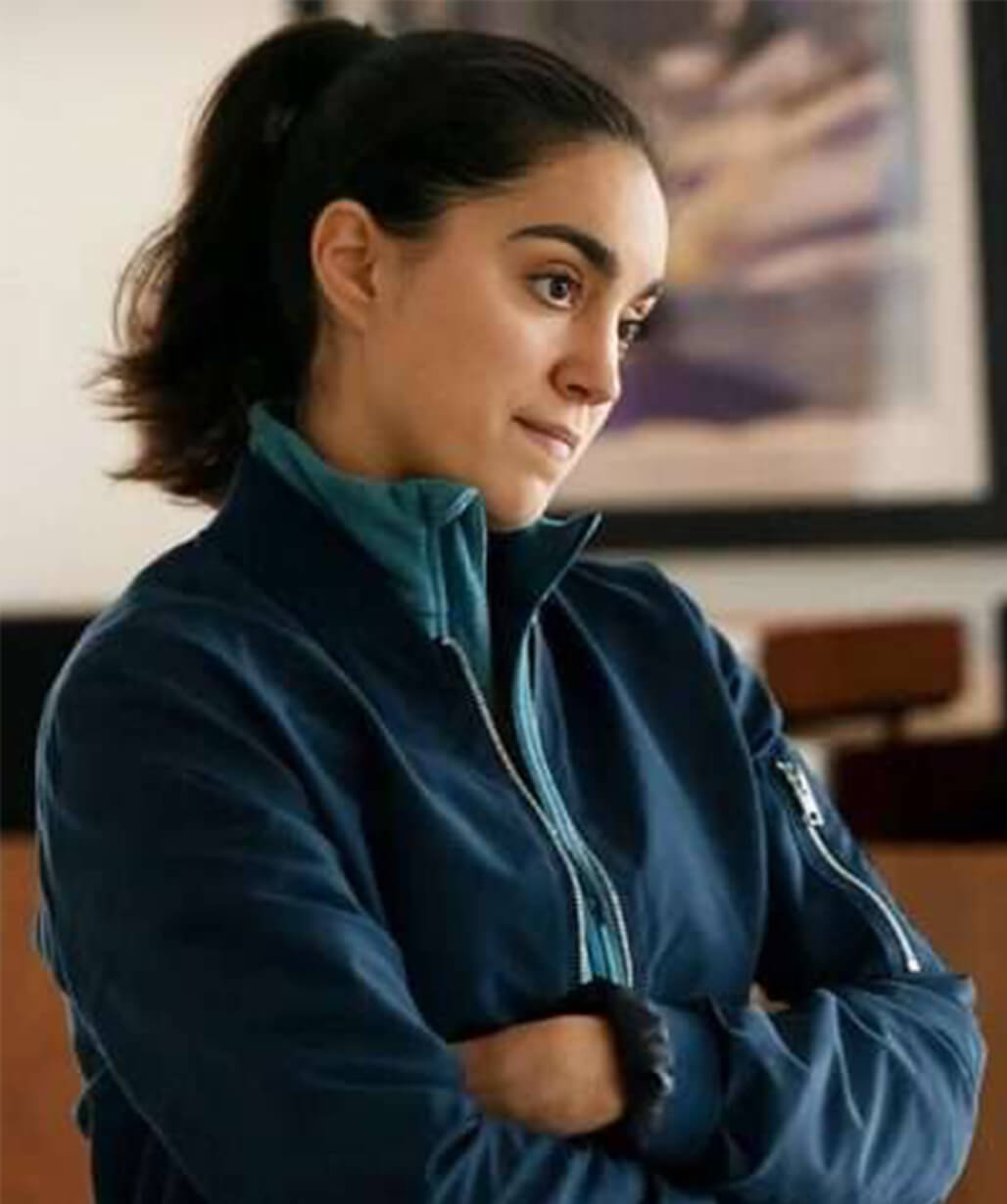 Lynley S01 Sofia Barclay Blue Bomber Jacket