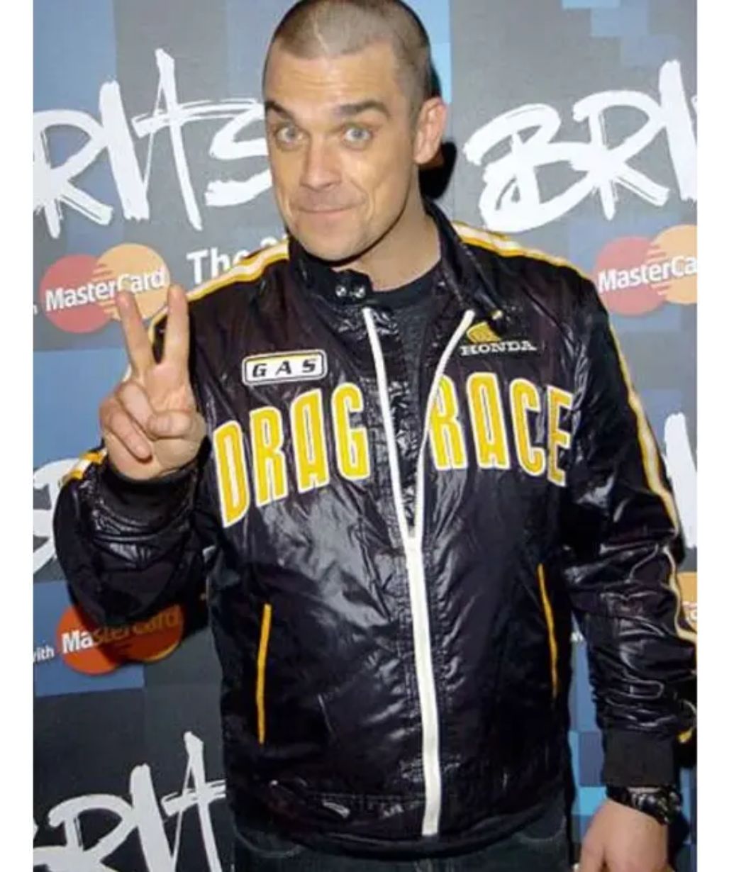 English Singer And Song Writer Robbie Williams Drag Race Black Leather Jacket