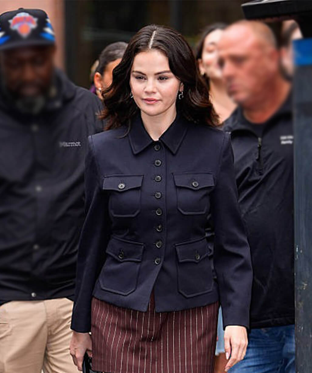 Selena Gomez Street Style 2025 Black Cotton Jacket