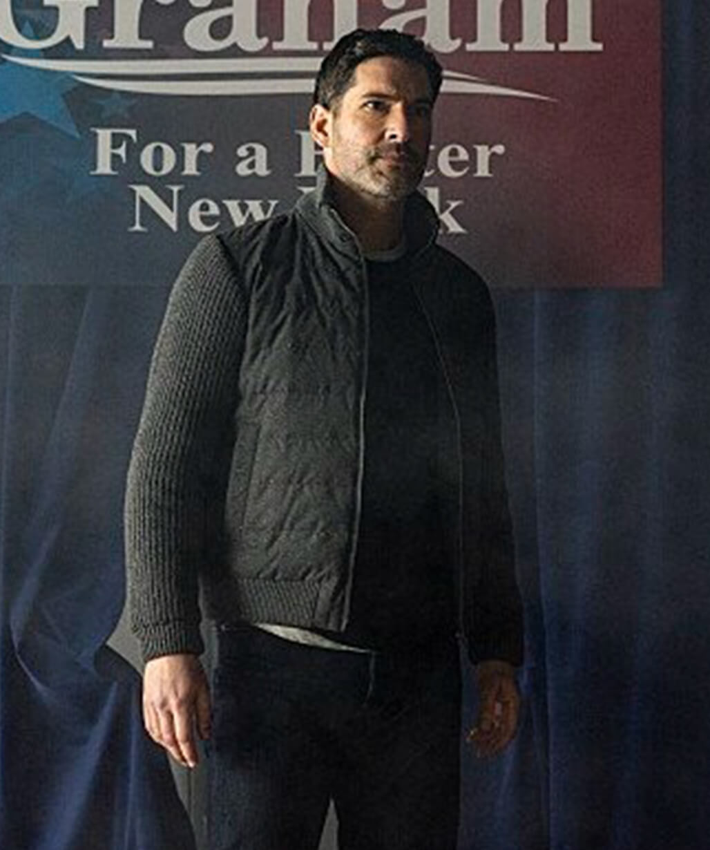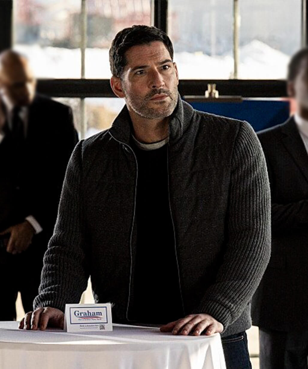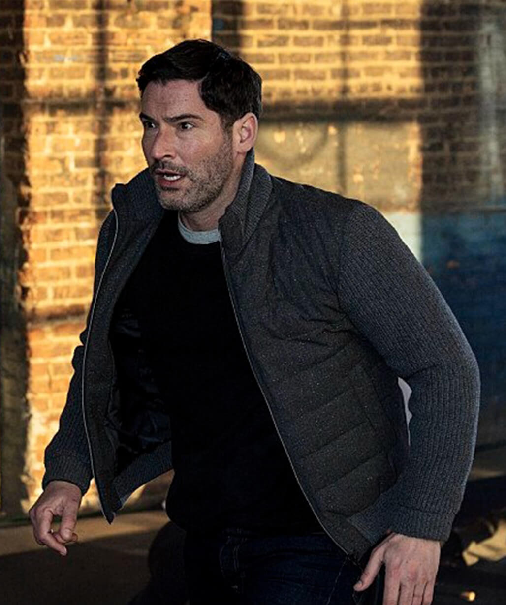 Tom Ellis CIA 2026 Grey Puffer Jacket