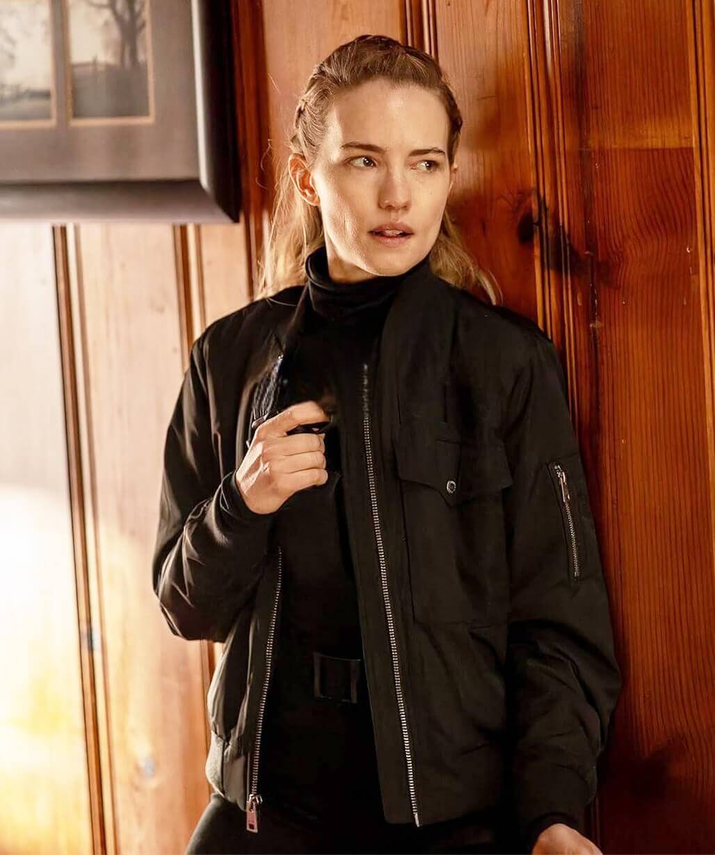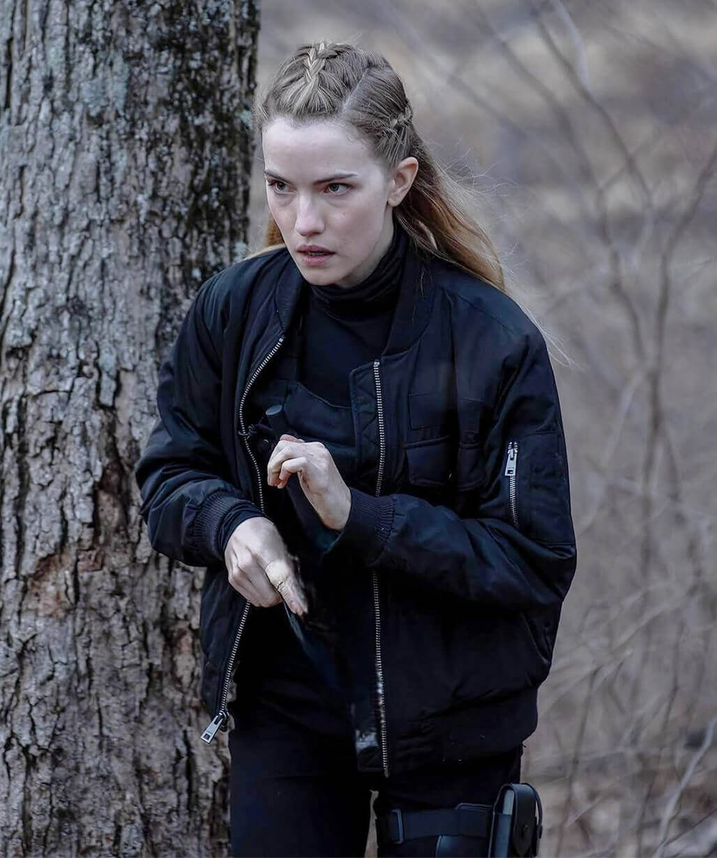 Willa Fitzgerald Alarum 2025 Black Bomber Jacket